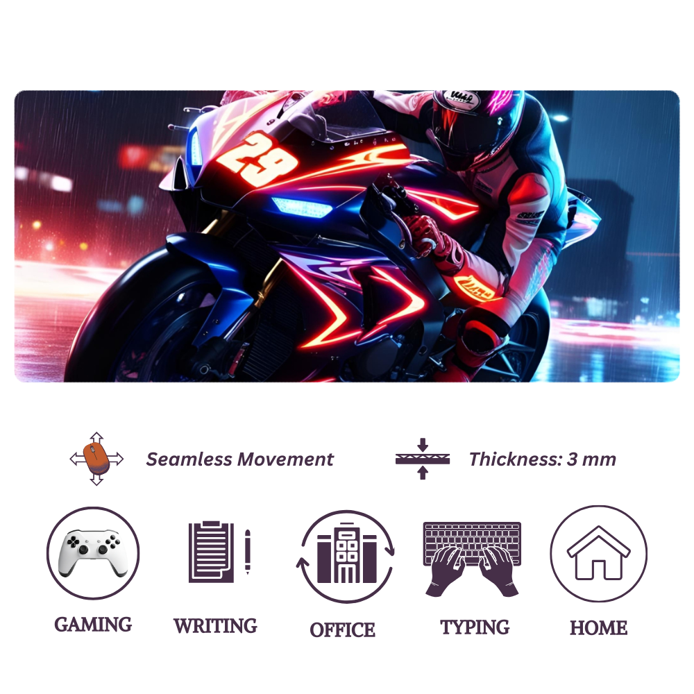 Be the first to review “Red Neon Racing Bike mat | Mouse pad | Desk pad”